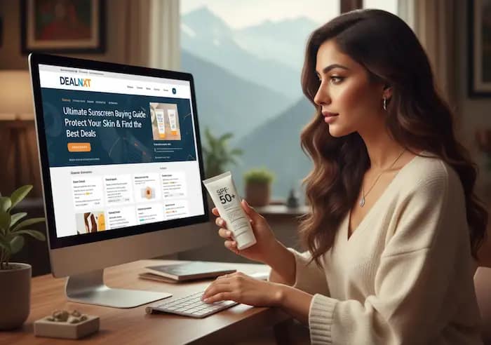 women is browsing the sunscreen product after reading the sunscreen buying guide on dealnxt